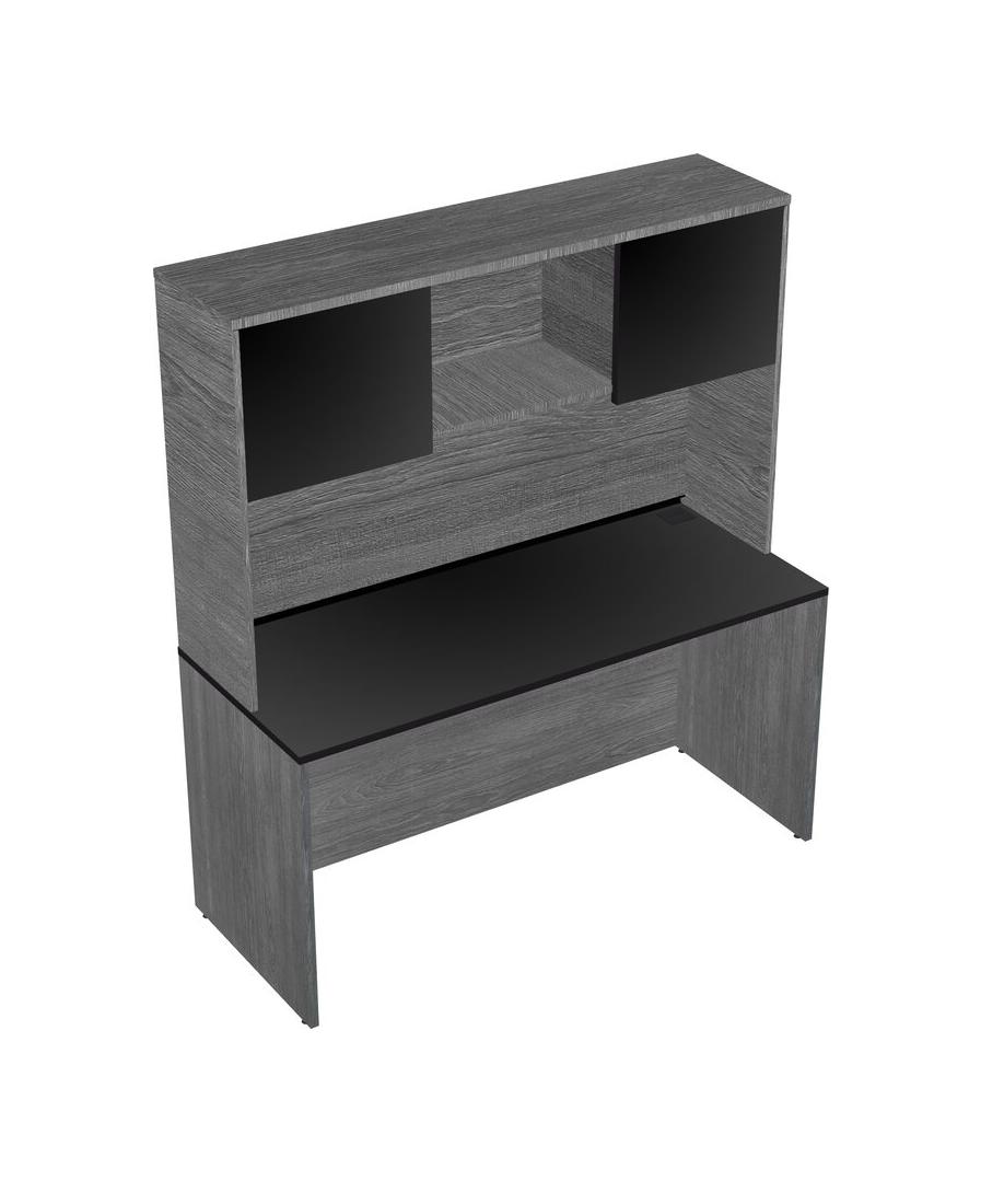 Black Rectangular Office Desk And Grey Hutch