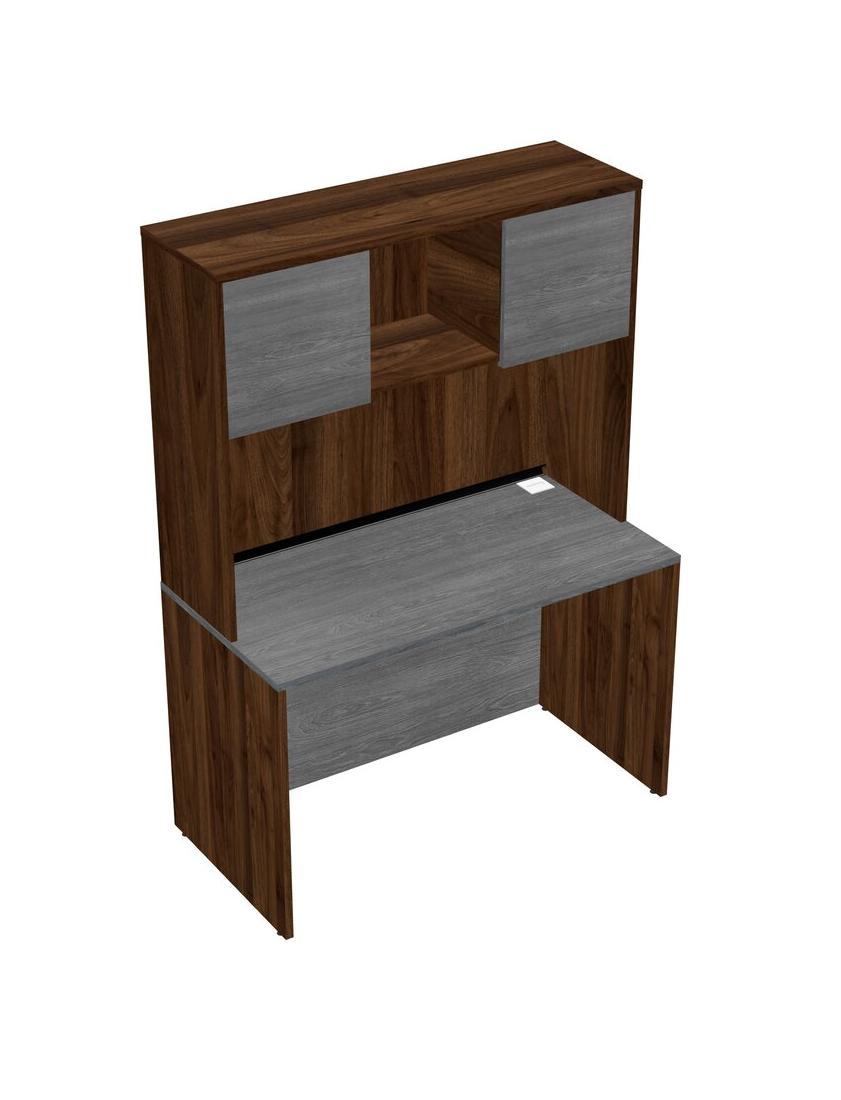Grey Rectangular Office Desk And Columbia Walnut Hutch