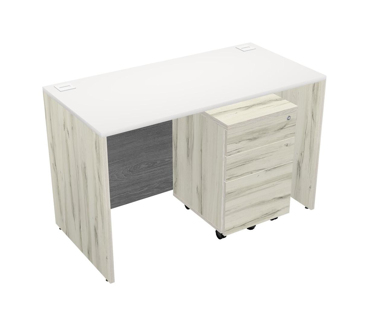 White Rectangular Office Desk Plus Heinne Holz Wooden Mobile Drawers