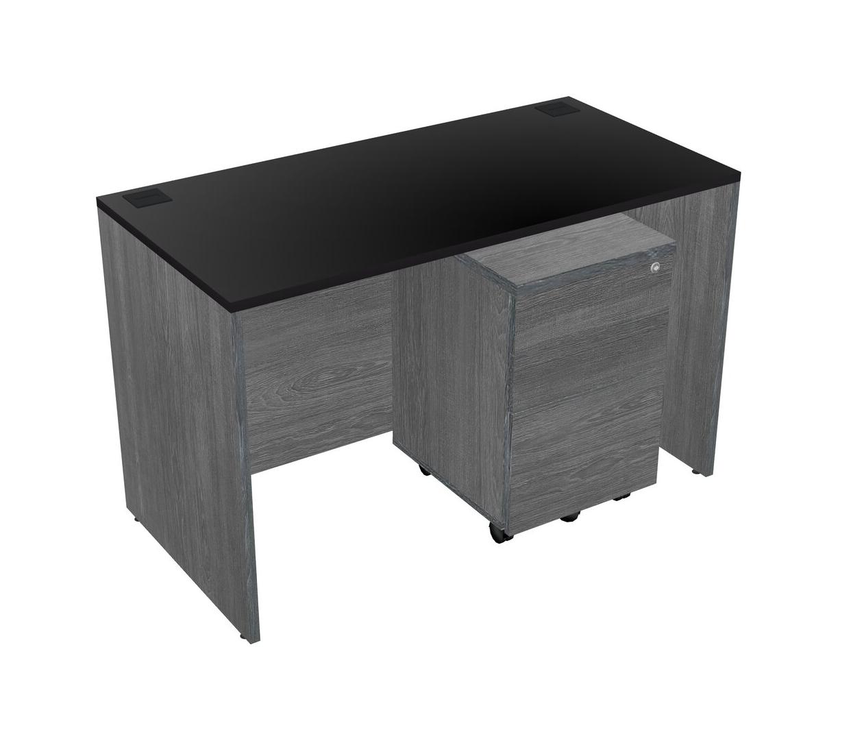 Black Rectangular Office Desk Plus Grey Wooden Mobile Drawers