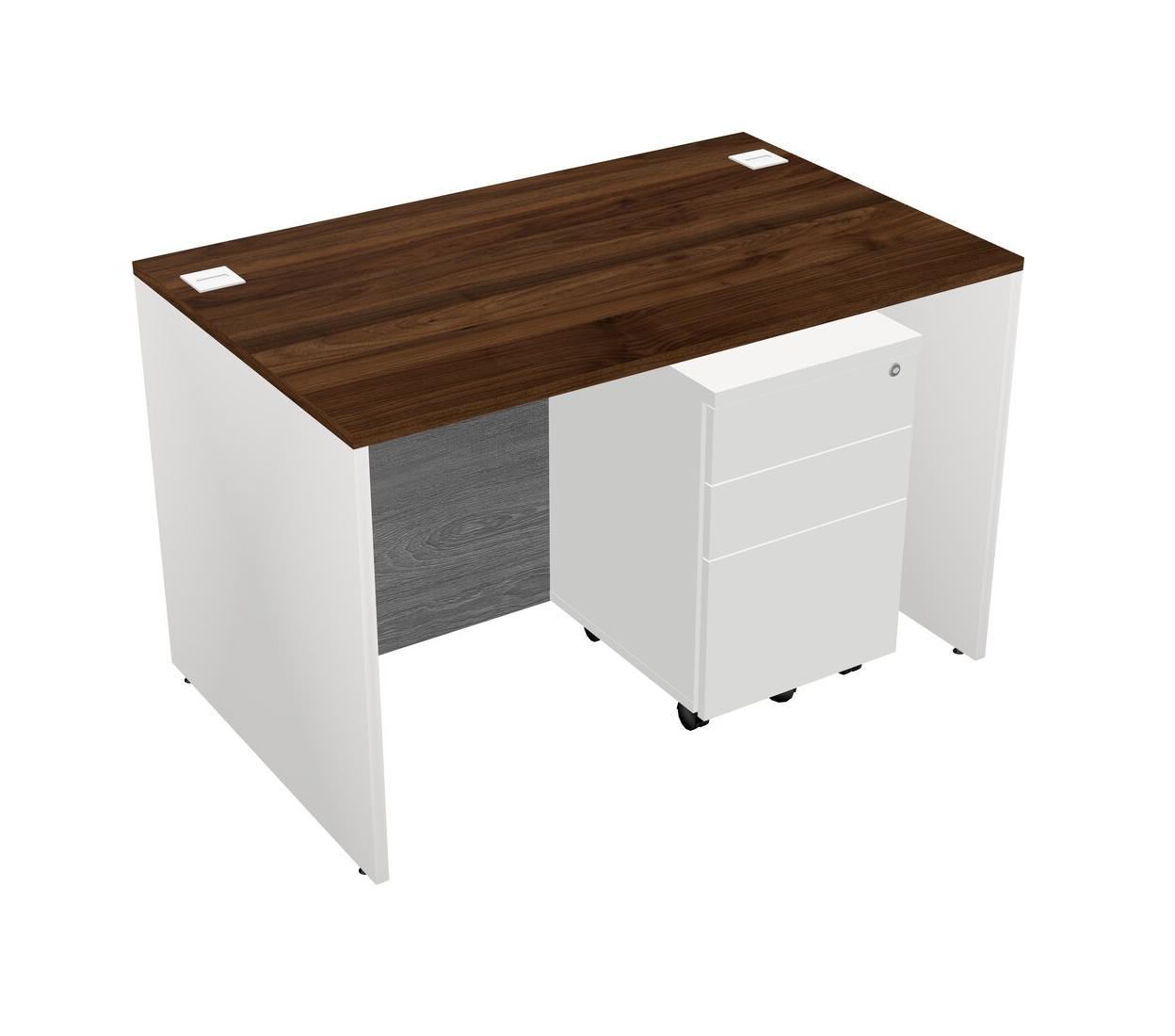 Columbia Walnut Rectangular Office Desk Plus White Wooden Mobile Drawers