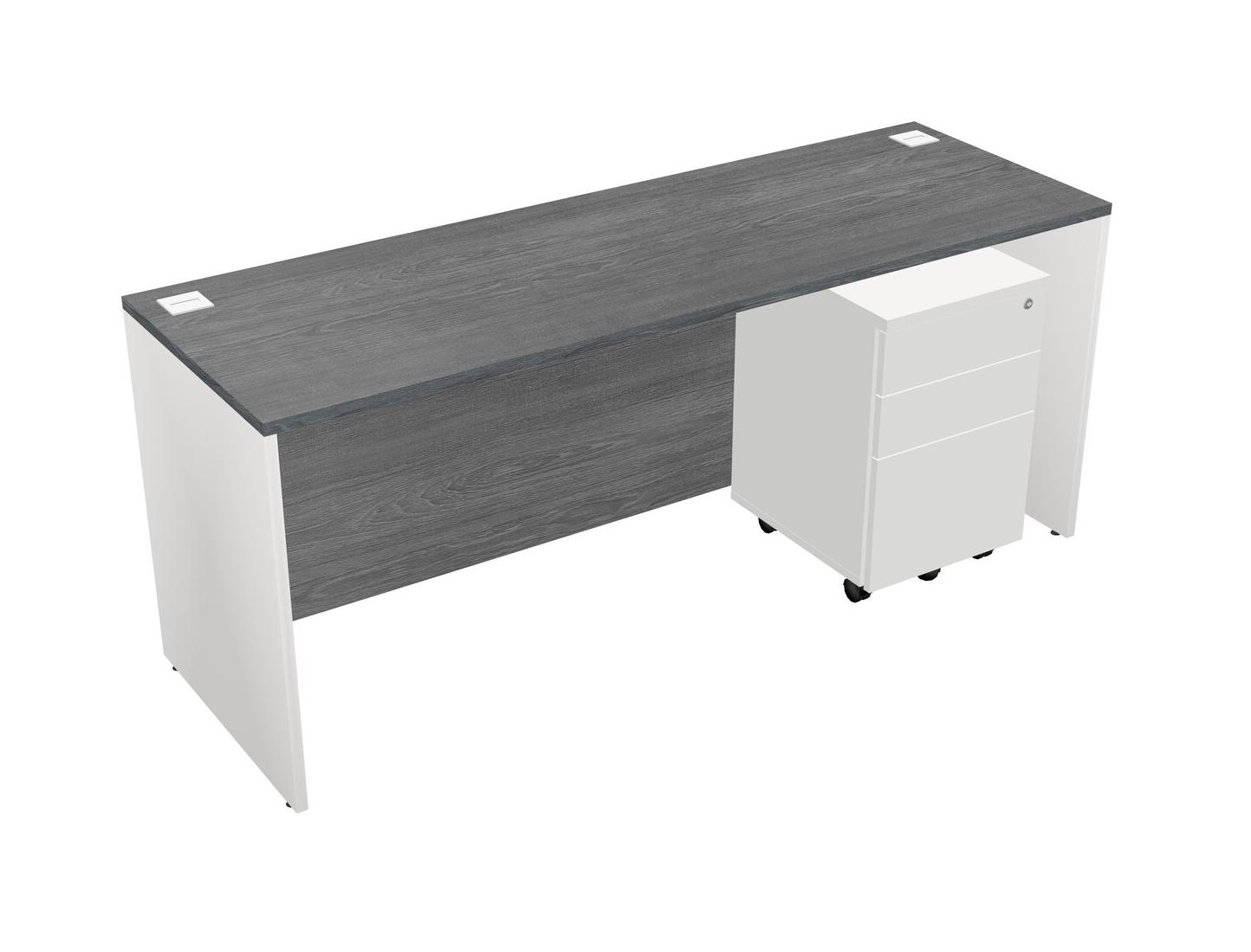 Grey Rectangular Office Desk Plus White Wooden Mobile Drawers