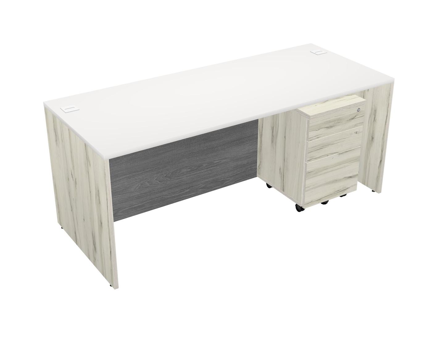 White Rectangular Office Desk Plus Heinne Holz Wooden Mobile Drawers