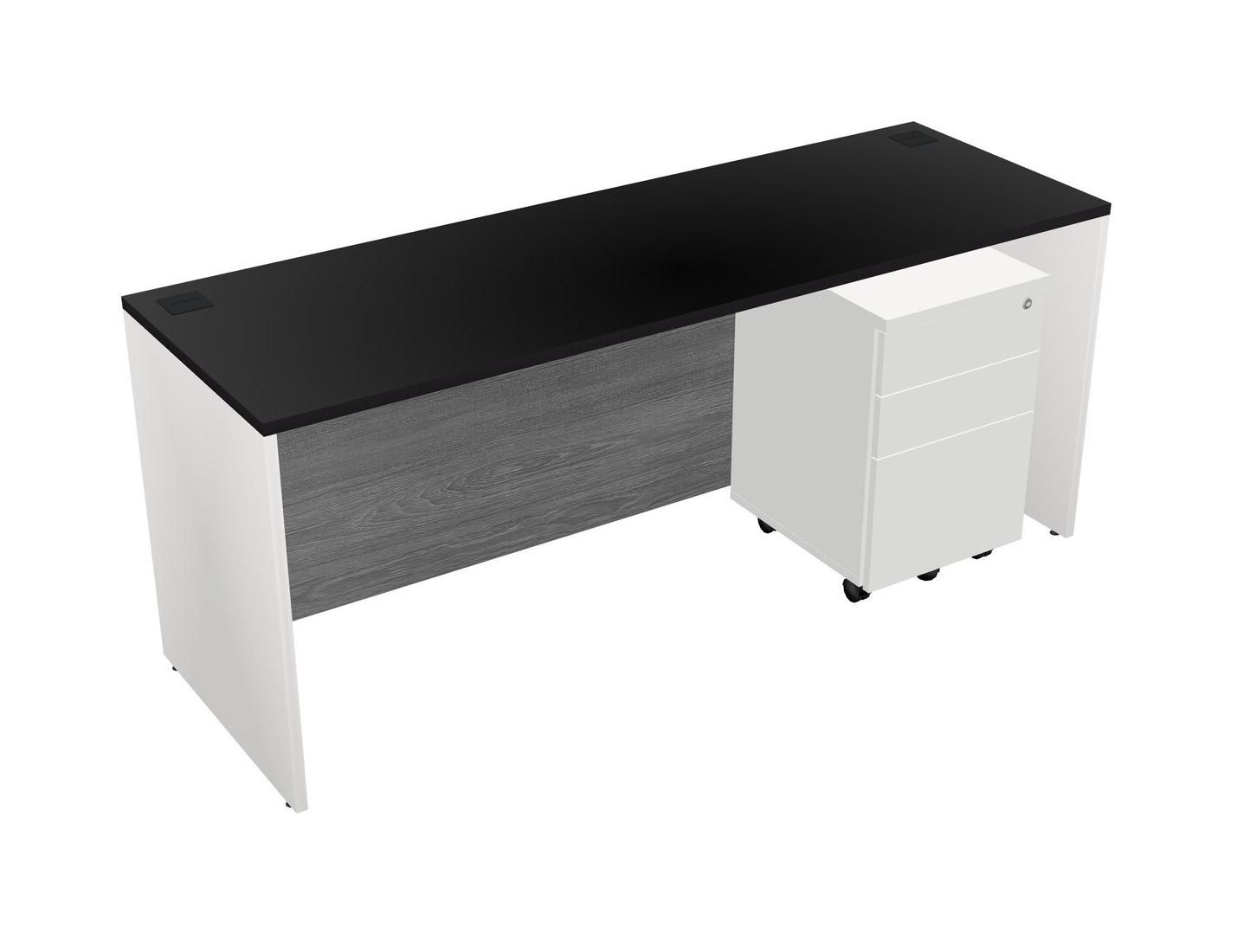 Black Rectangular Office Desk Plus White Wooden Mobile Drawers