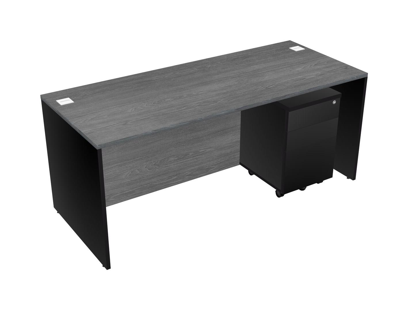 Grey Rectangular Office Desk Plus Black Wooden Mobile Drawers