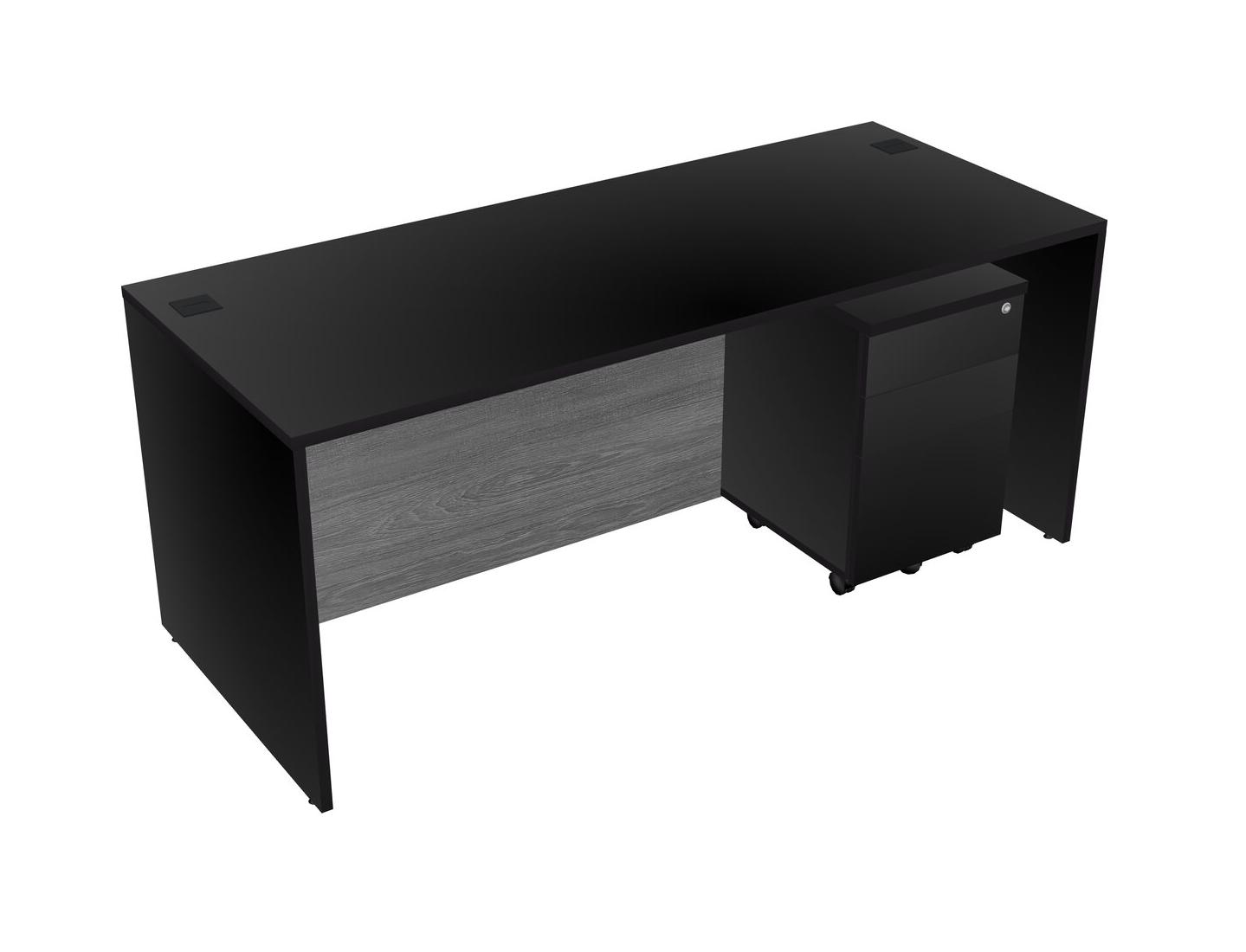 Black Rectangular Office Desk Plus Black Wooden Mobile Drawers