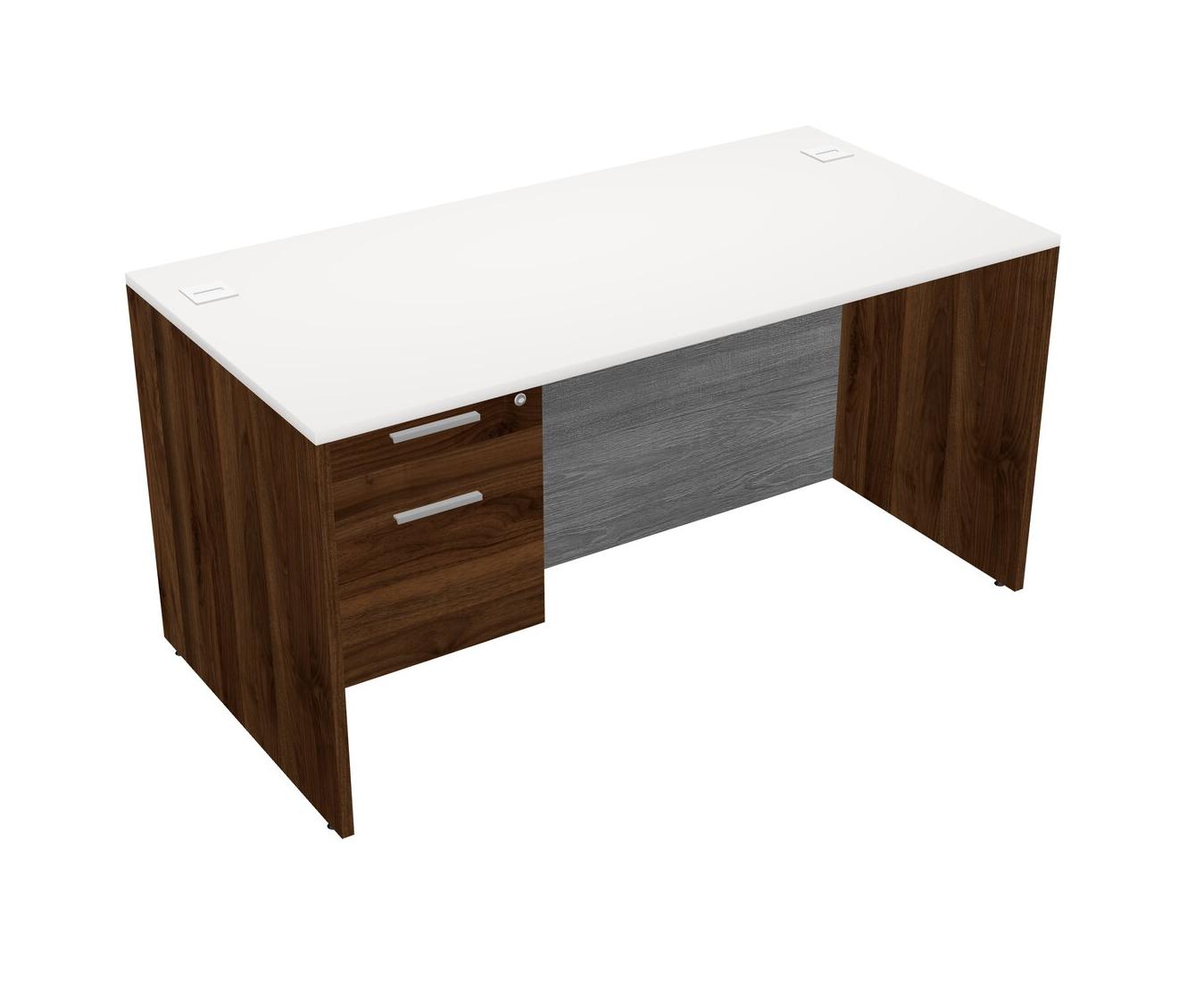 White Rectangular Office Desk Plus Columbia Walnut Hanging Drawers