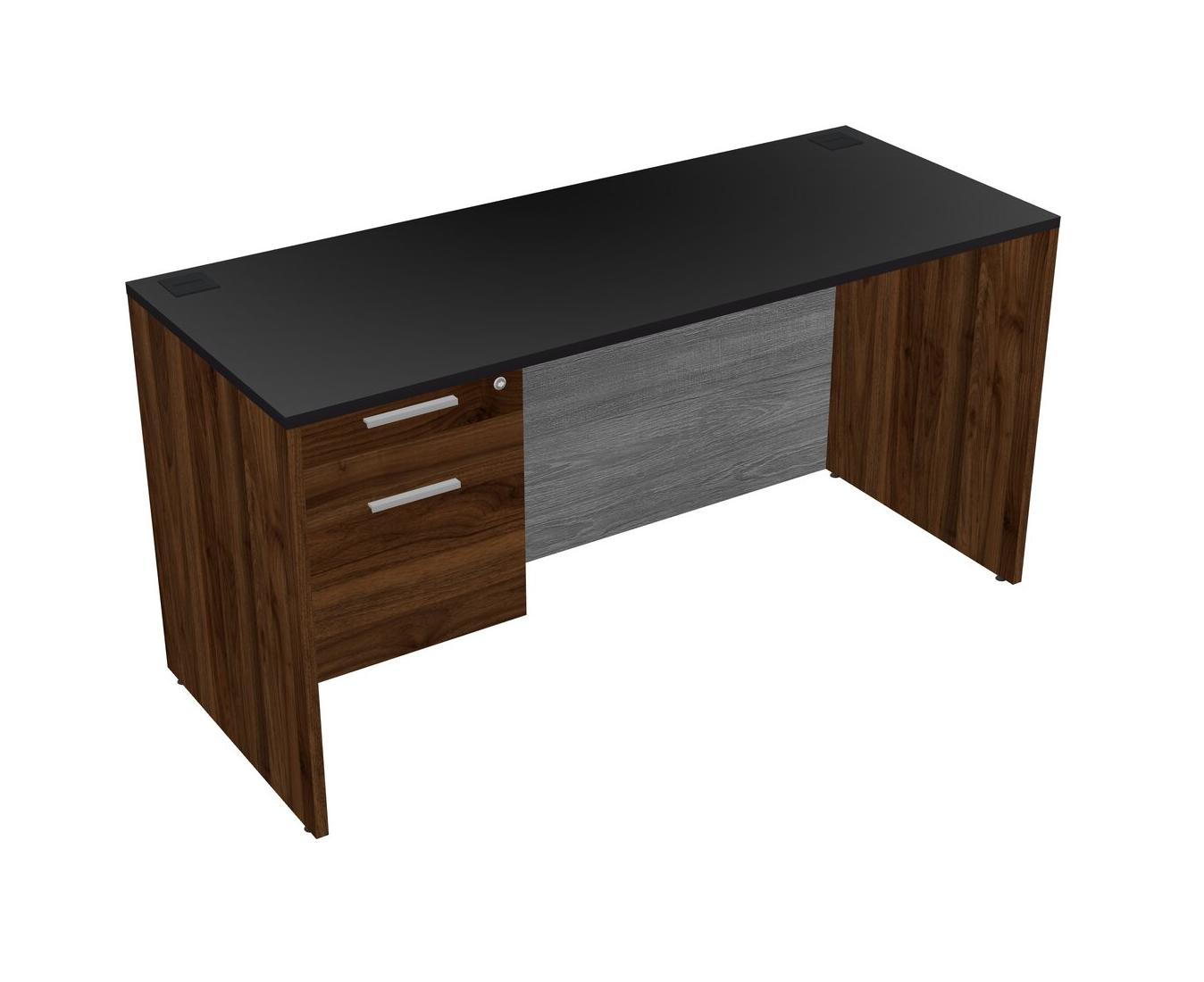 Black Rectangular Office Desk Plus Columbia Walnut Hanging Drawers