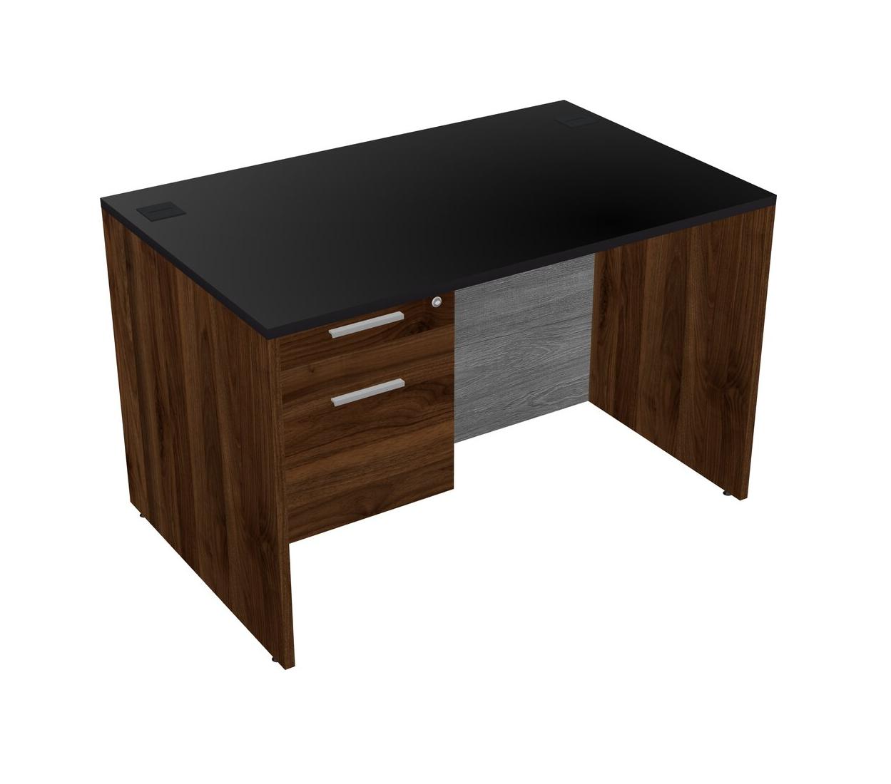 Black Rectangular Office Desk Plus Columbia Walnut Hanging Drawers