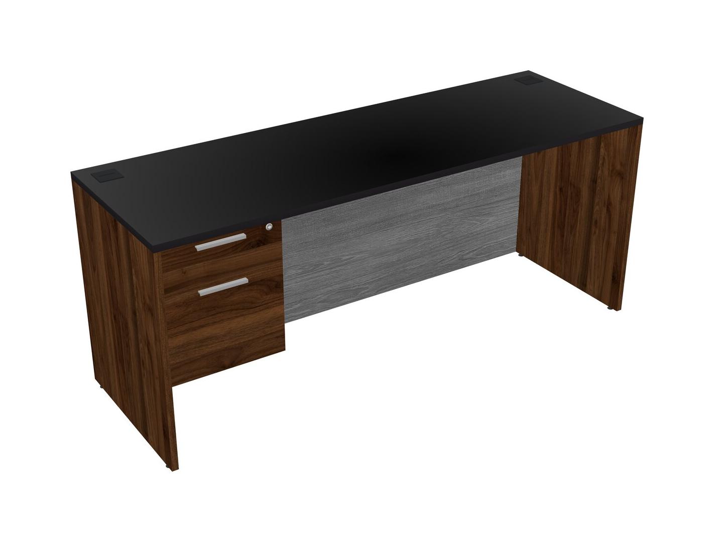 Black Rectangular Office Desk Plus Columbia Walnut Hanging Drawers