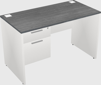 Grey Rectangular Office Desk Plus White Hanging Drawers
