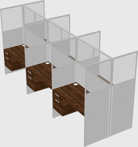 Columbia Walnut Shared Rectangular Office Cubicle Panel System With Hanging Drawers For 6 Persons