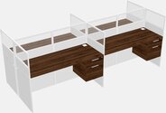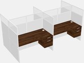 Columbia Walnut Shared Rectangular Office Cubicle Panel System With Hanging Drawers For 4 Persons