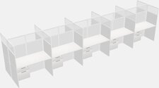 White Shared Rectangular Office Cubicle Panel System With Hanging Drawers For 4 Persons