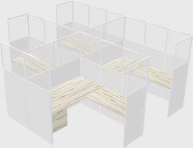 Heinne Holz Shared L-Shaped Office Cubicle Panel System With Hanging Drawers For 4 Persons