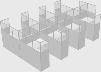 White Shared L-Shaped Office Cubicle Panel System With Hanging Drawers For 8 Persons