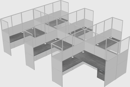 Grey Shared L-Shaped Office Cubicle Panel System With Hanging Drawers For 6 Persons