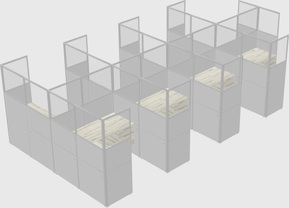 Heinne Holz Shared L-Shaped Office Cubicle Panel System With Hanging Drawers For 8 Persons