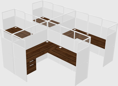 Columbia Walnut Shared L-Shaped Office Cubicle Panel System With Hanging Drawers For 4 Persons