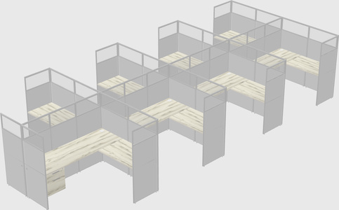 Heinne Holz Shared L-Shaped Office Cubicle Panel System With Hanging Drawers For 8 Persons