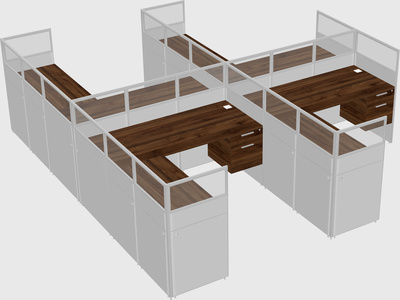 Columbia Walnut Shared L-Shaped Office Cubicle Panel System With Hanging Drawers For 4 Persons