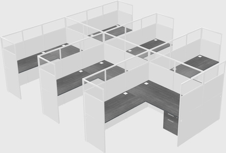 Grey Shared L-Shaped Office Cubicle Panel System With Hanging Drawers For 6 Persons