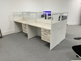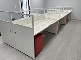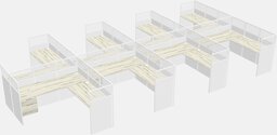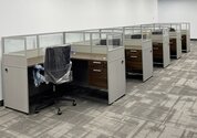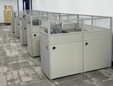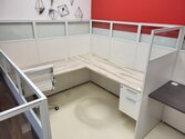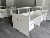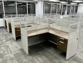 Heinne Holz Shared L-Shaped Office Cubicle Panel System With Hanging Drawers For 8 Persons