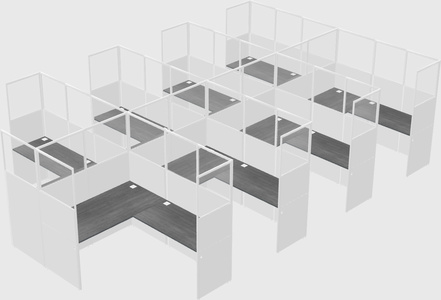 Grey Shared L-Shaped Office Cubicle Panel System For 8 Persons