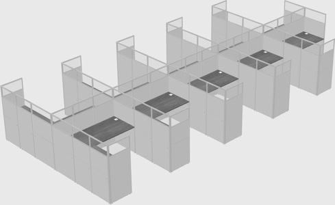 Grey Shared L-Shaped Office Cubicle Panel System For 10 Persons