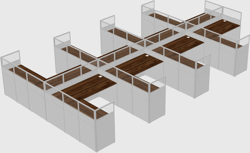 Columbia Walnut Shared L-Shaped Office Cubicle Panel System For 8 Persons
