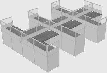Grey Shared L-Shaped Office Cubicle Panel System For 6 Persons