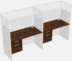 Columbia Walnut Shared Rectangular Office Cubicle Panel System With Hanging Drawers For 2 Persons