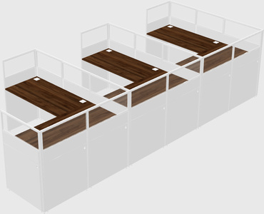 Columbia Walnut Shared L-Shaped Office Cubicle Panel System For 3 Persons