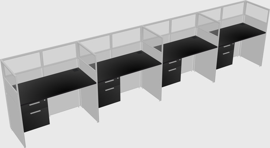 Black Shared Rectangular Office Cubicle Panel System With Hanging Drawers For 4 Persons