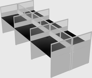 Black Shared Rectangular Office Cubicle Panel System For 6 Persons