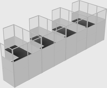 Black Shared L-Shaped Office Cubicle Panel System With Hanging Drawers For 4 Persons