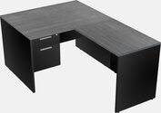 Grey L-shaped Office Desk With Black Hanging Drawers