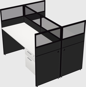 White Shared Rectangular Office Cubicle Panel System With Hanging Drawers For 2 Persons