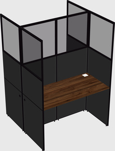 Columbia Walnut Shared Rectangular Office Cubicle Panel System For 2 Persons