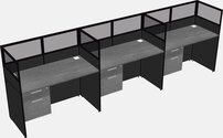 Grey Shared Rectangular Office Cubicle Panel System With Hanging Drawers For 3 Persons
