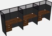 Columbia Walnut Shared Rectangular Office Cubicle Panel System With Hanging Drawers For 2 Persons