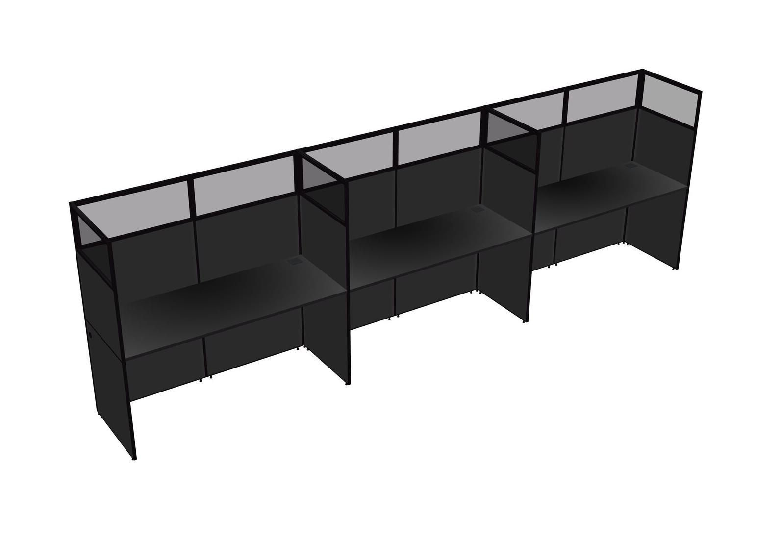Black Shared Rectangular Office Cubicle Panel System For 3 Persons