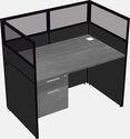 Grey Shared Rectangular Office Cubicle Panel System With Hanging Drawers For 1 Persons