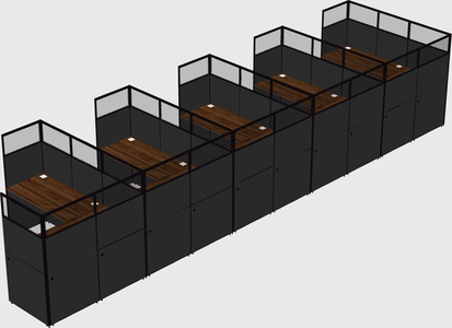 Columbia Walnut Shared L-Shaped Office Cubicle Panel System With Hanging Drawers For 5 Persons