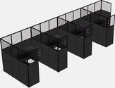 Columbia Walnut Shared L-Shaped Office Cubicle Panel System With Hanging Drawers For 4 Persons