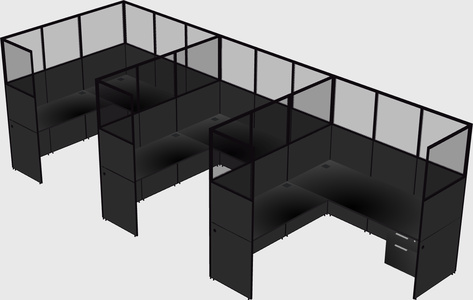 Black Shared L-Shaped Office Cubicle Panel System With Hanging Drawers For 3 Persons