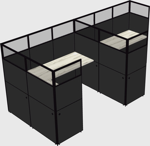 Heinne Holz Shared L-Shaped Office Cubicle Panel System For 2 Persons