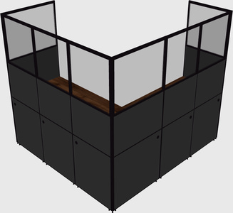 Columbia Walnut Shared L-Shaped Office Cubicle Panel System For 1 Persons