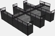 Grey Shared L-Shaped Office Cubicle Panel System With Hanging Drawers For 6 Persons