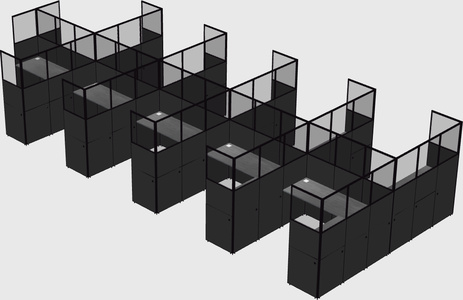 Grey Shared L-Shaped Office Cubicle Panel System For 10 Persons